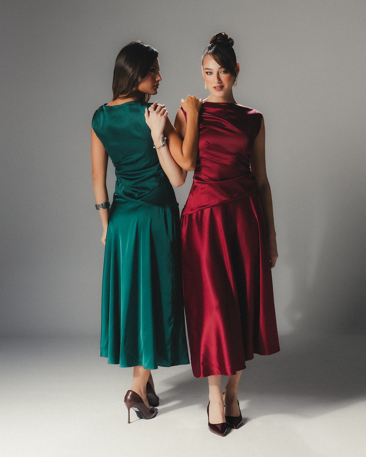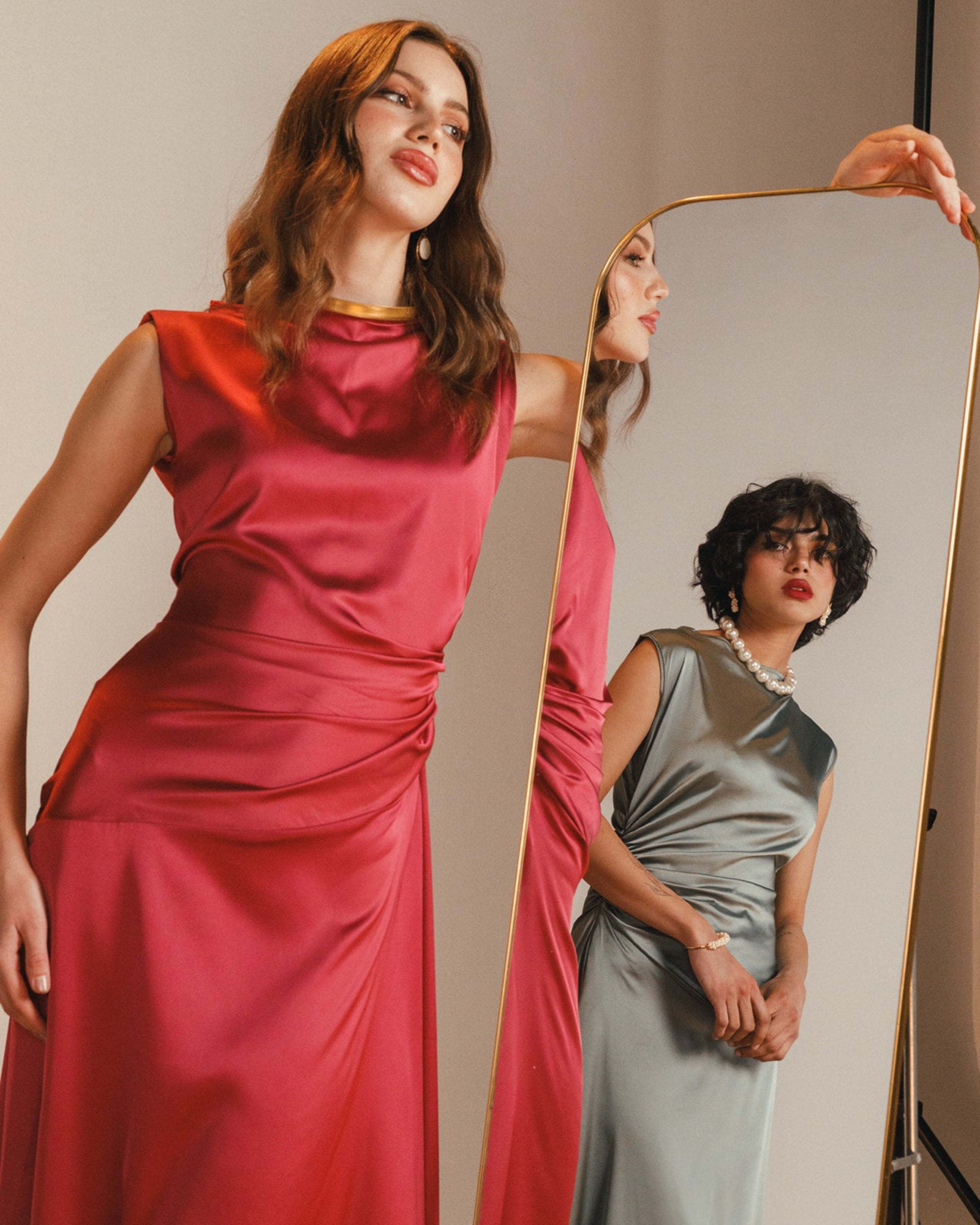 Effortlessly elegant and undeniably feminine, this best-selling satin dress turns heads with every step. Crafted from luxuriously flowy fabric that glides with grace, it captures light—and attention—with a subtle sheen that speaks volumes